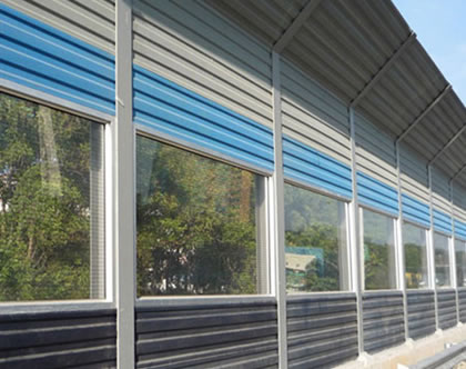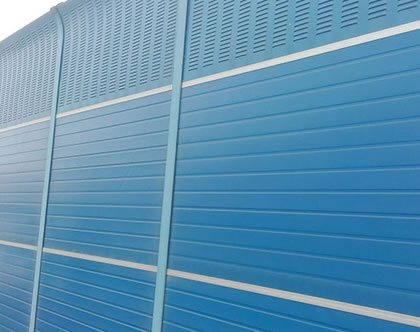 彩鋼板聲屏障是在高速上越來(lái)越多的*種聲屏障材料,彩鋼板聲屏障主要由鋼立柱和彩鋼屏體板組成,屏體板主要內(nèi)部有泡沫夾心作為吸音材料,外部是兩層彩鋼板,可以多種顏色,藍(lán)色、白色等;常常彩鋼板聲屏障與鍍鋅板聲屏障相互結(jié)合,吸音隔音結(jié)合,效果更佳!