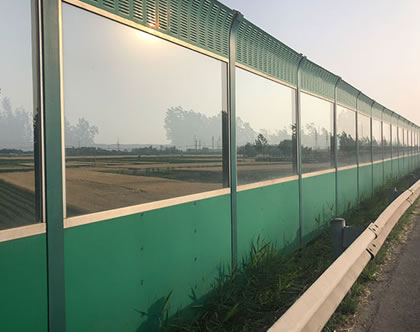 材質:鋁板聲屏障、金屬聲屏障、彩鋼聲屏障、玻璃聲屏障、pc板聲屏障等。