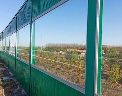 透明組合聲屏障的特點是框架由經過氧化處理的鋁合金制作,且具有重量輕、強度高、不腐蝕、美觀等特點。夾膠玻璃是透明型隔音墻的主要選材,具有較強的安全性能和良好的透明性及耐磨性,透明組合聲屏障主要是城市風景區或者住宅區用于隔絕臨近的城市道路交通噪聲的措施,與周邊的樹木等景觀形成*道獨特的風景。