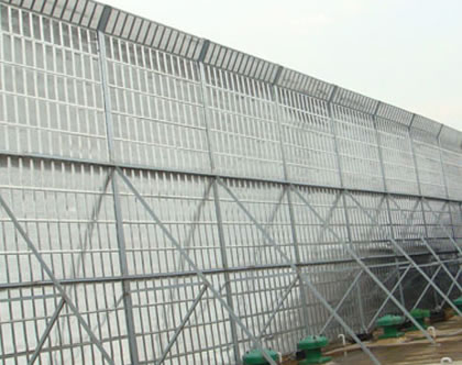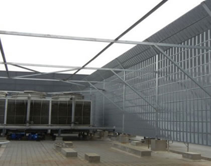 折角型聲屏障主要用于公路、高速公路、冷卻塔噪音治理。分為純隔聲的反射型聲屏障,和吸聲與隔聲相結(jié)合的復(fù)合型聲屏障,后者是更為有效的隔聲方法。指的是為減輕行車(chē)噪聲對(duì)附近居民的影響而設(shè)置在鐵路和公路側(cè)旁的墻式構(gòu)造物。