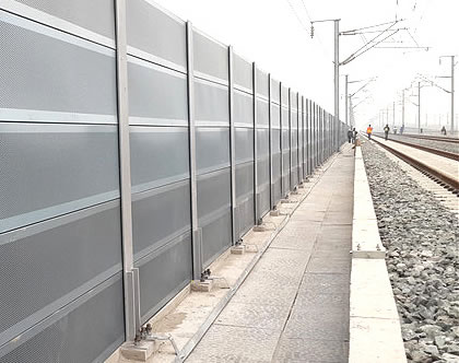 鐵路聲屏障也成為鐵路隔音墻,高鐵聲屏障,它是根據當前高速鐵路列車運行速度200km/h以下產生噪音設計的*種聲屏障。此類產品的設計已較為充分地考慮了高架高速道路、城市輕軌、地鐵的風載、交通車輛的撞擊安全和全天候的露天防腐問題。