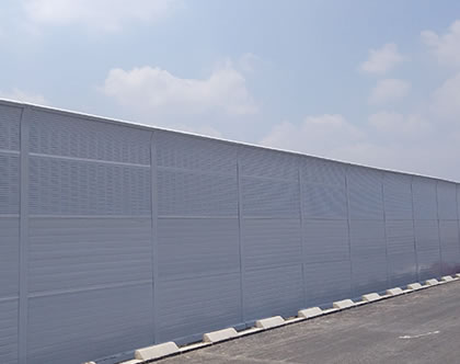 公路聲屏障的主要組成部件: 基礎(chǔ)、立柱、屏體、固定件、密封件,有的還包括頂部結(jié)構(gòu)。