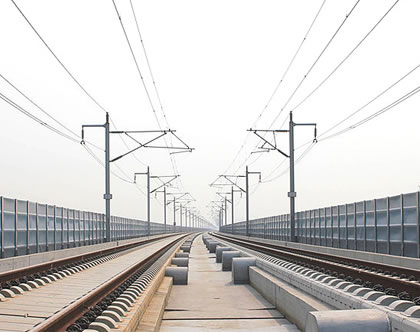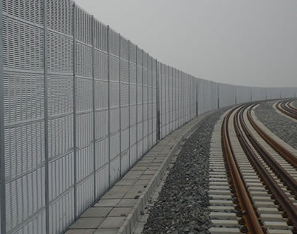 鐵路聲屏障也成為鐵路隔音墻,高鐵聲屏障,它是根據當前高速鐵路列車運行速度200km/h以下產生噪音設計的*種聲屏障。此類產品的設計已較為充分地考慮了高架高速道路、城市輕軌、地鐵的風載、交通車輛的撞擊安全和全天候的露天防腐問題。